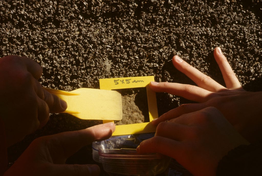 - In the fall of 2010, two volunteers count zebra mussels in quadrats (each 0.5 by 0.5m) on the floor of lock 31, at Smiths Falls, Ontario. (Photo | Museum of Nature)